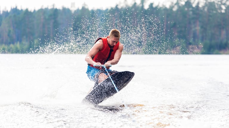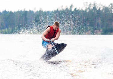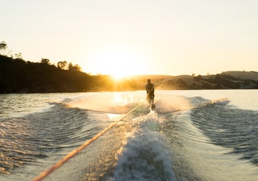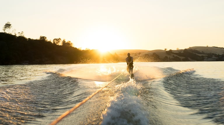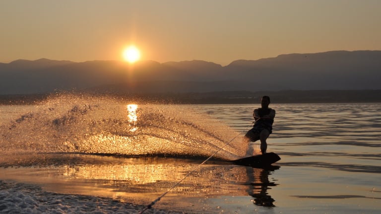 Imagine-se deslizando sobre a água, sendo puxado por um barco, enquanto realiza manobras incríveis e sente a brisa no rosto.