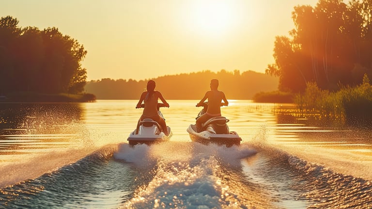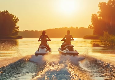 Deslize sobre a água em alta velocidade, sinta a brisa no rosto e a emoção de manobrar pela represa.