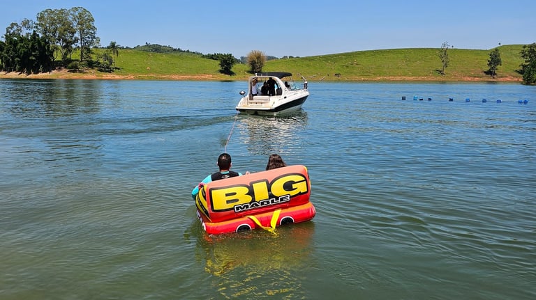 Uma experiência que eleva a emoção a outro nível. Com esquis nos pés e a força do barco que te puxa em alta velocidade, você desliza sobre as águas da represa, sentindo a liberdade e a adrenalina a cada movimento.
